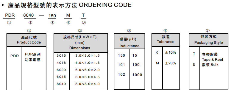 PDR8040-101MT功率電感