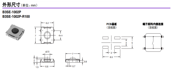 6mm方型超薄型密封表面安裝輕觸開關具有高耐久性。