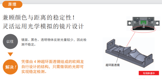 首先給大家科普一下限定反射傳感器的原理:傳感器接收來自檢測物體的反射光以檢測物體有無。擁有限定了投光光束和受光區域的光學系統,僅可檢測相距傳感器一定距離(投光光束與受光區域重合的范圍)的物體。