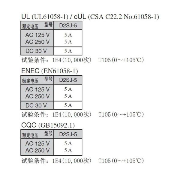 對歐姆龍而言,安全向來重要。歐姆龍D2SJ的額定電壓、額定電流均達到中國CQC、北美UL和歐洲ENEC的安全標準,并全面落實中國、北美和歐洲GB15092.1、UL61058-1、EN61058-1要求的指標。值得一提的是歐姆龍D2SJ在DC 500V時,絕緣電阻可達100MΩ以上,電阻阻值越大,流過它的電流越小,故使用起來也就越安全。