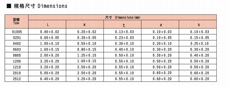 厚膜片式跨接電阻 RS-01系列